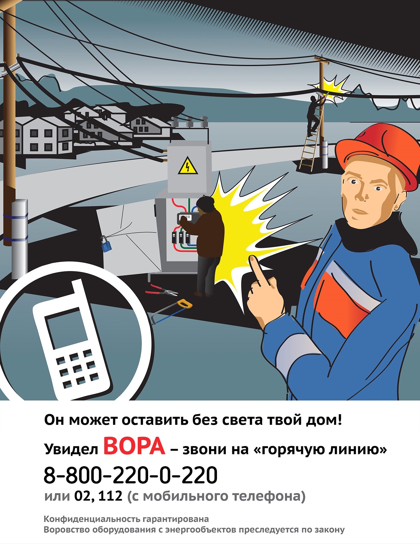 Сообщите об известных Вам фактах хищения электроэнергии и энергооборудования по телефонам доверия «Россети Северо-Запад» .